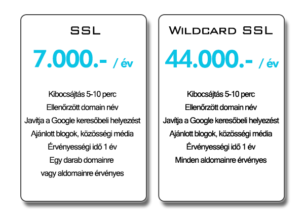 Az SSL árak az ÁFA mértékét NEM tartalmazzák!